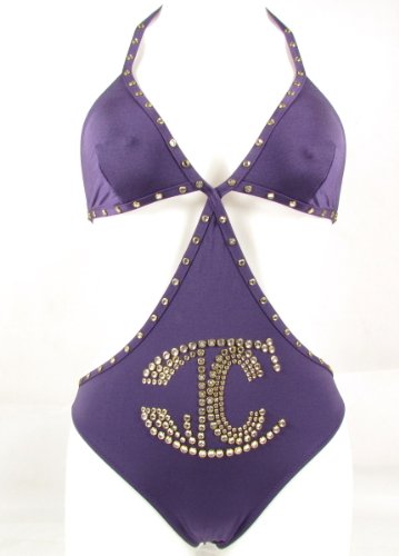 JUST CAVALLI "Sexy Diamond" Femme logo monokini metallique avec strass (violet/doré) EU-M / US-S / FR-40