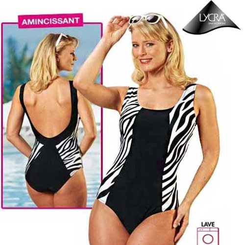 • Très bien structuré, sa coupe allonge encore plus la silhouette grâce à son imprimé mode contrasté : noir uni et zébré sur les hanches. Matière: 80% polyamide, 20% élasthanne Lycra ®