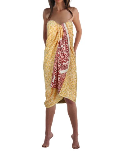 Paréo design - Vêtement femme - Jaune et rouge 162x114 cm