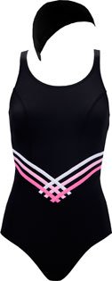 Maillot de bain 1 pièce noir et rose : Red Point Swimming Pool - Maillots 1 pièce - Maillot de natation avec bonnet - Couleur :