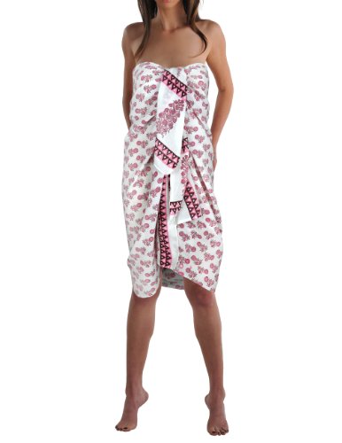 Sarong Paréo en Coton Motif Retro Imprimé Floral. -Blanc . EUR 12,90. En stock Paréo coloré en coton 162x114 cm.