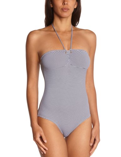 Petit Bateau - Maillot de bain 1 pièce Forme bandeau Bretelles larges Thirteen - Femme - Multicolore (Smoking/Ecume) - M. Petit Bateau Maillot 1 Pièce Rayé